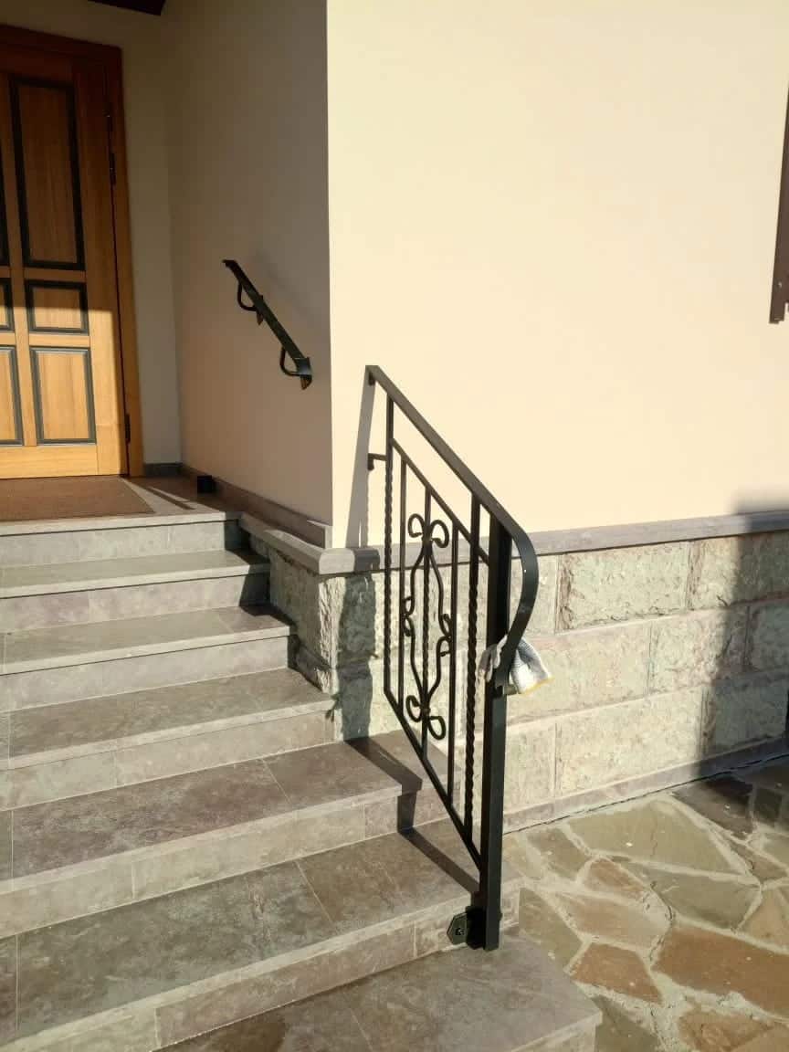 При создании кованых поручней и перил соблюдались правила эргономики (высота, удобство захвата и расположения конструкционных элементов). Подъем по крыльцу стал комфортным и безопасным, а внешний облик центрального входа получил дизайнерское завершение.
