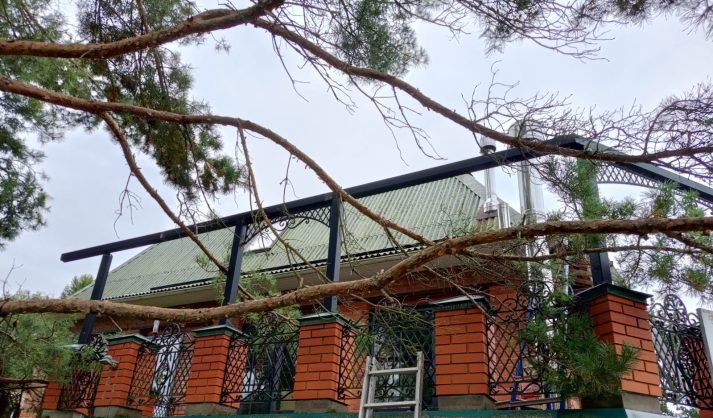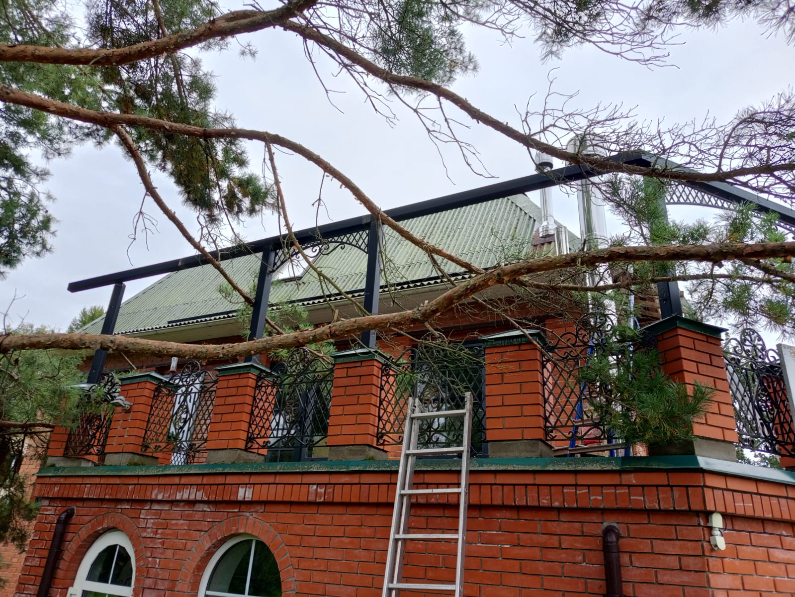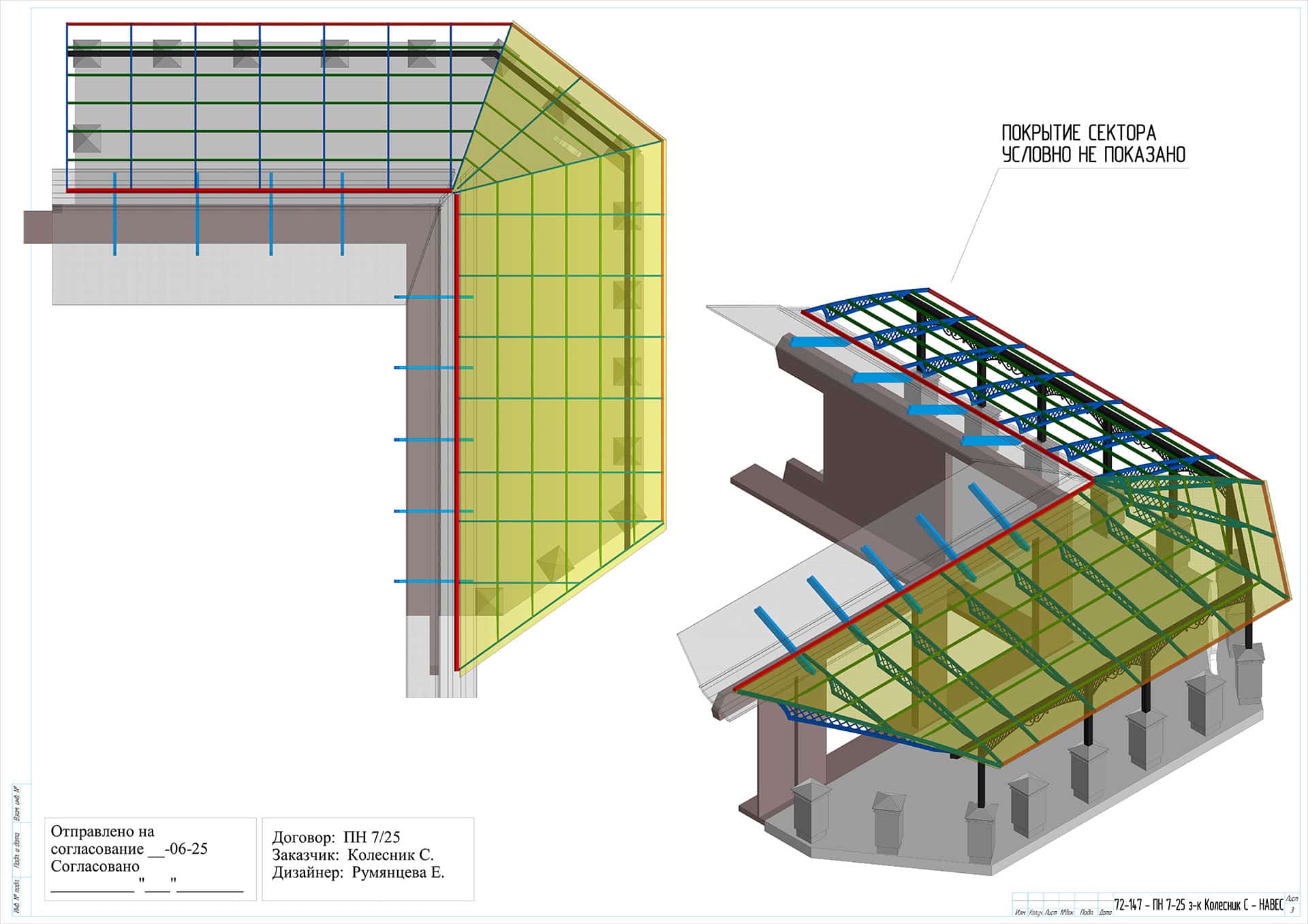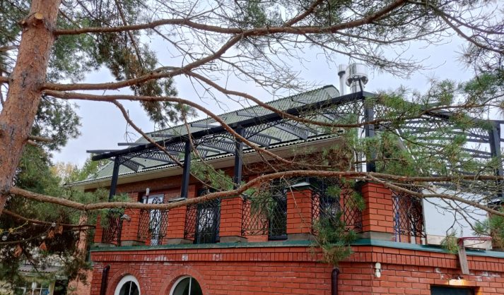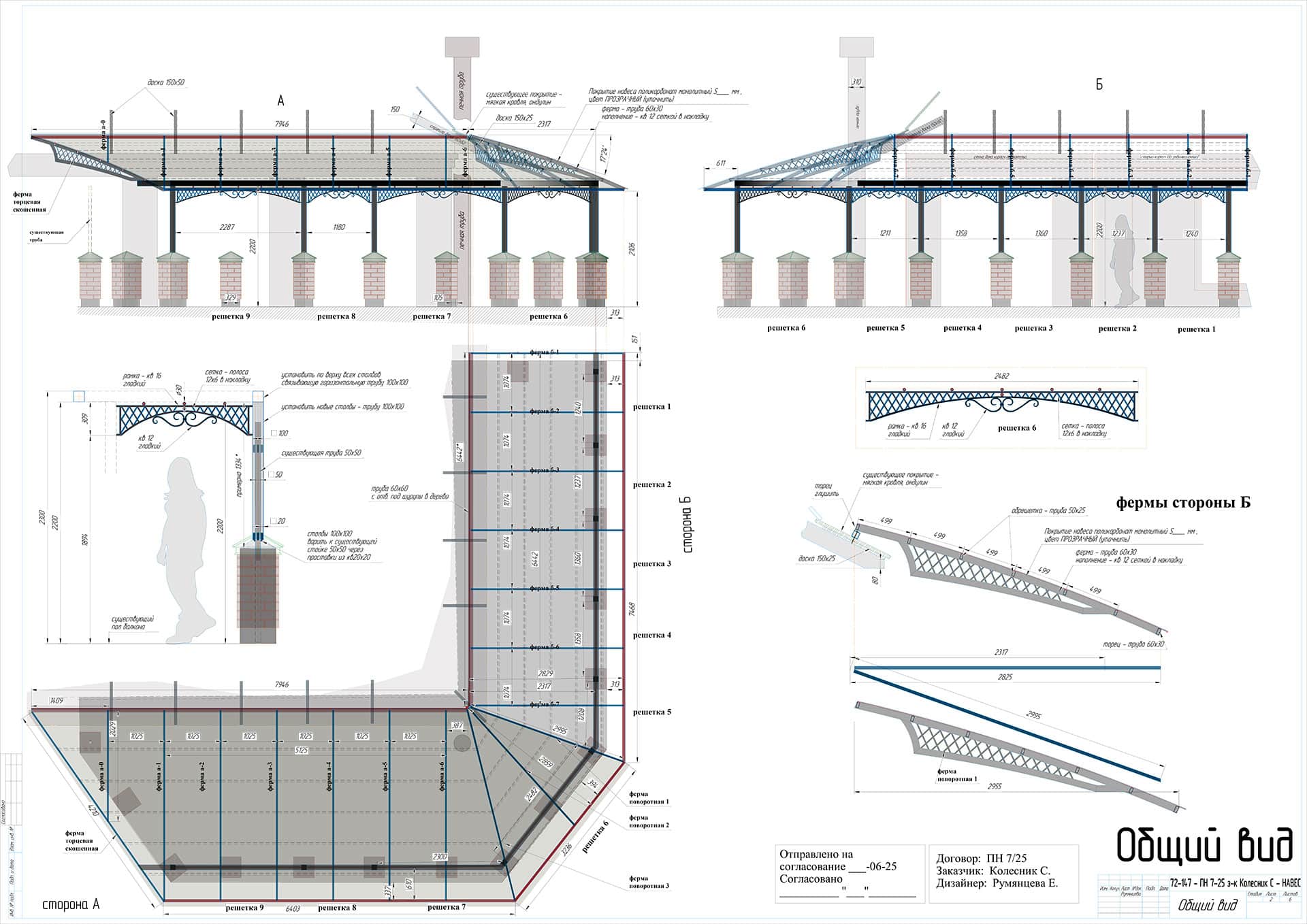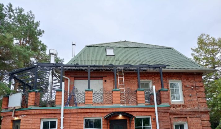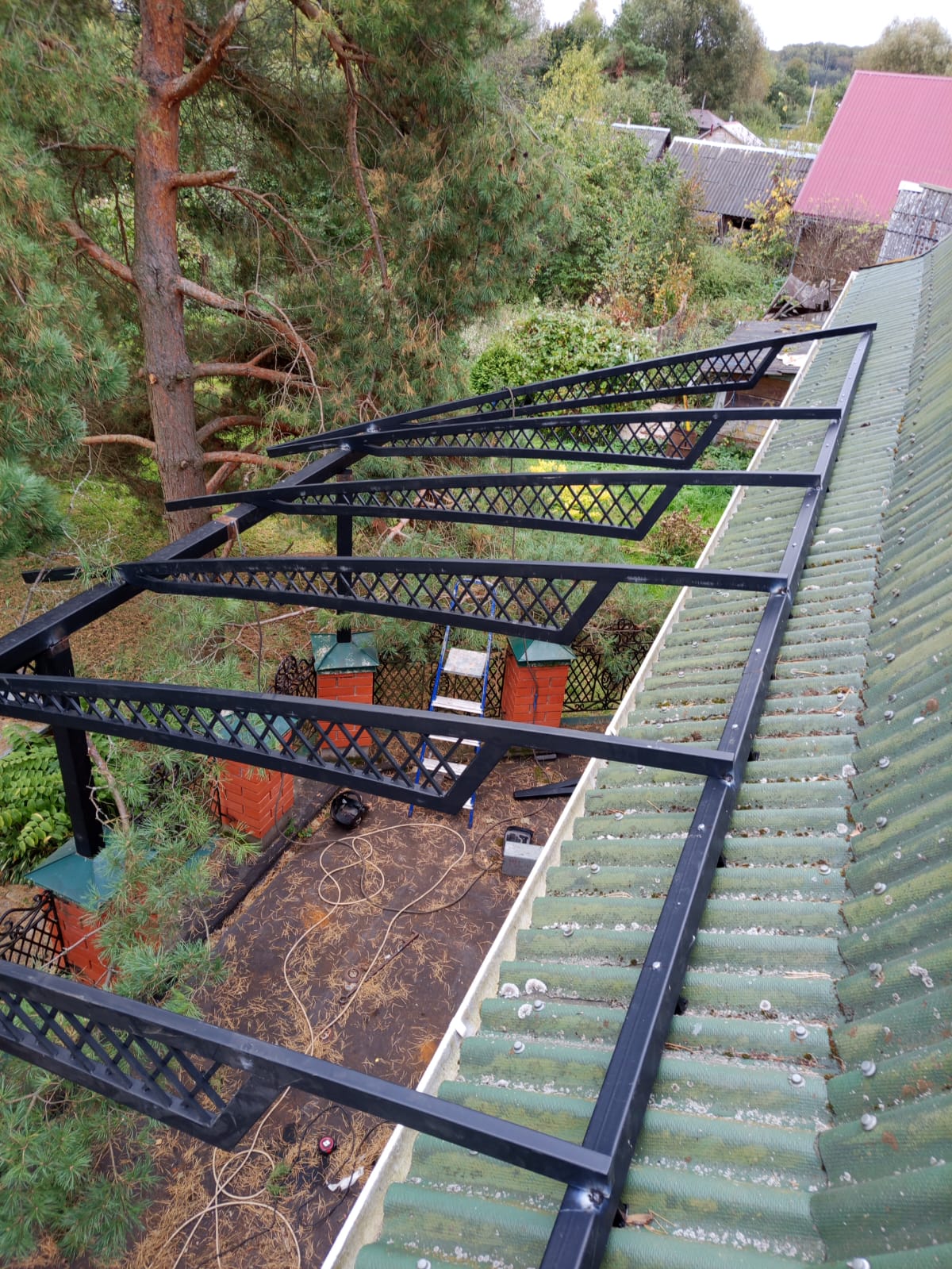 В перечне последних работ Тульского завода художественной ковки, — изготовление и монтаж кованого навеса Г-образной формы (9,0*8,0 м). Навес представляет собой оригинальную по дизайну металлическую конструкцию, установленную на втором этаже здания. Основные функции ограждения — защита от солнца и механических повреждений. Навесная система с элементами художественной ковки (решетка и сеточка) играет также роль декоративной составляющей архитектурной композиции.